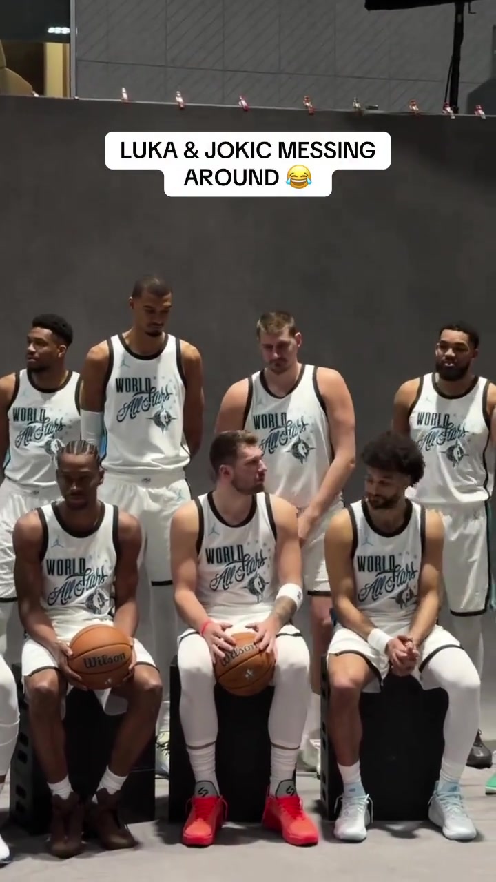 世界队合照约基奇还是喜欢和东契奇逗🤭