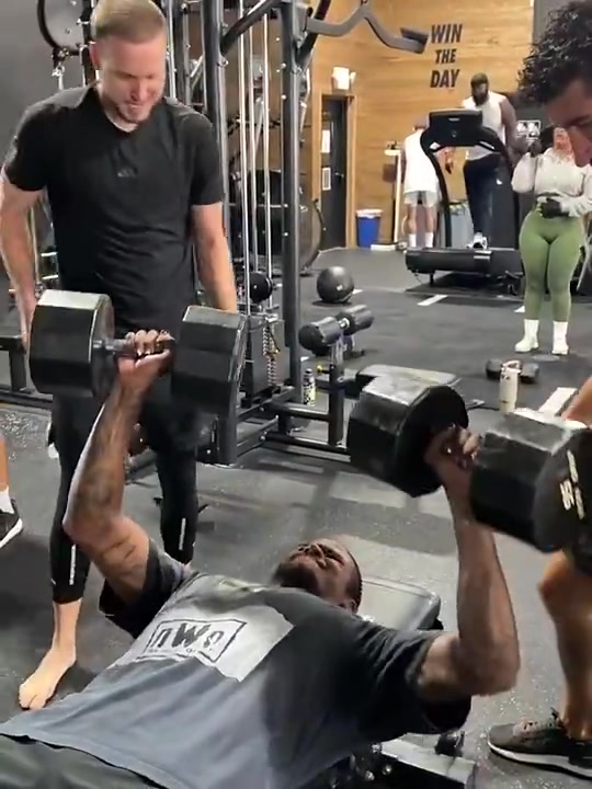 没白练!杰伦·格林此前用俩43公斤哑铃卧推,吧友能超过他吗?