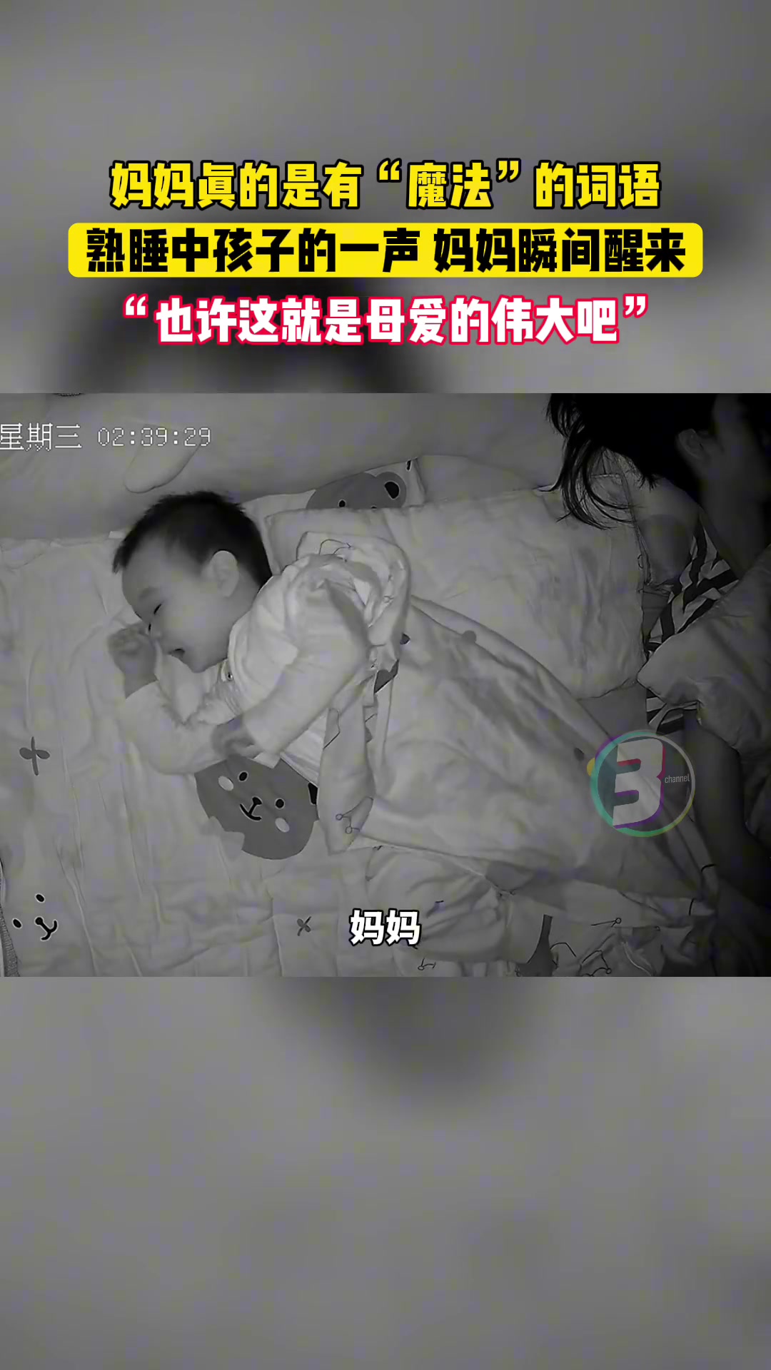 >熟睡的孩子突然说梦话,睡旁边的妈妈醒来一阵暖心!
