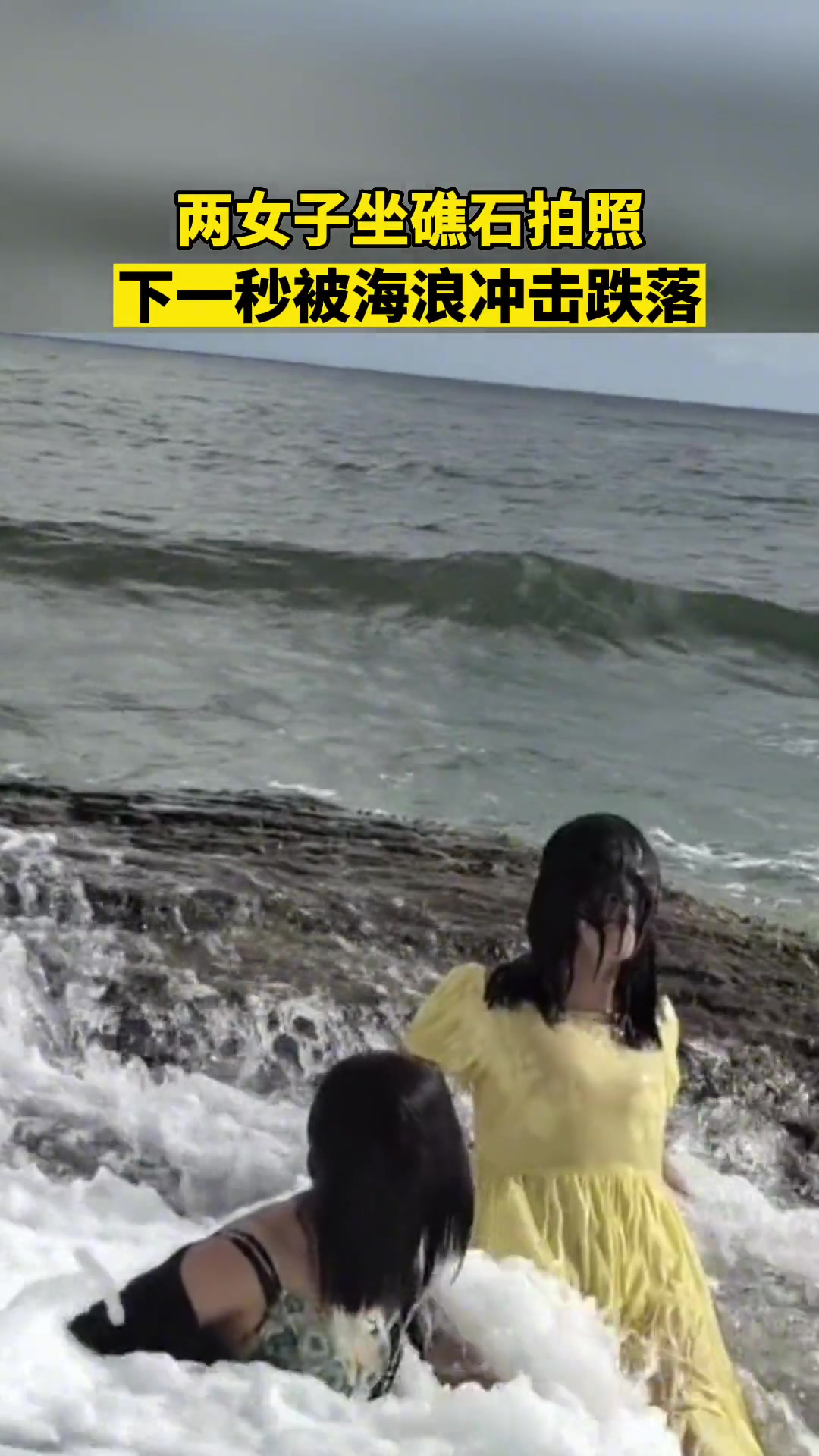 >恐怖!两女子坐礁石拍照 下一秒被海浪冲击跌落