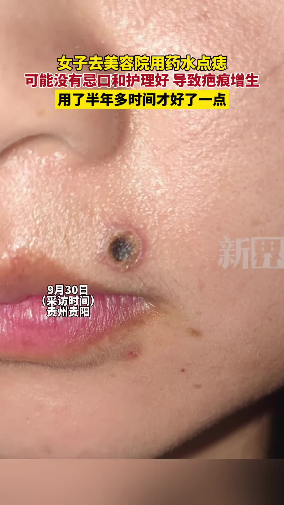 点痣还是要慎重!女子药水点痣导致疤痕增生!
