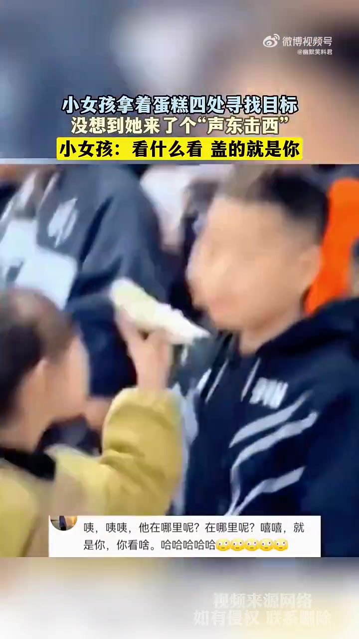 >小女孩拿着蛋糕四处寻找目标没想到她来了个“声东击西