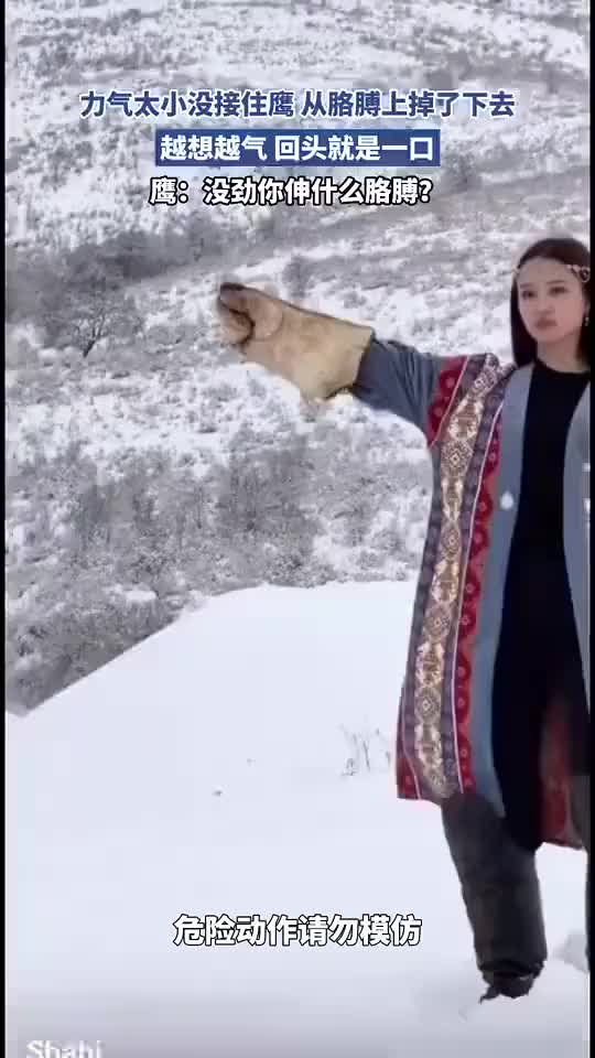 >小姐姐胳膊力气太小没接住老鹰,遭到反噬!