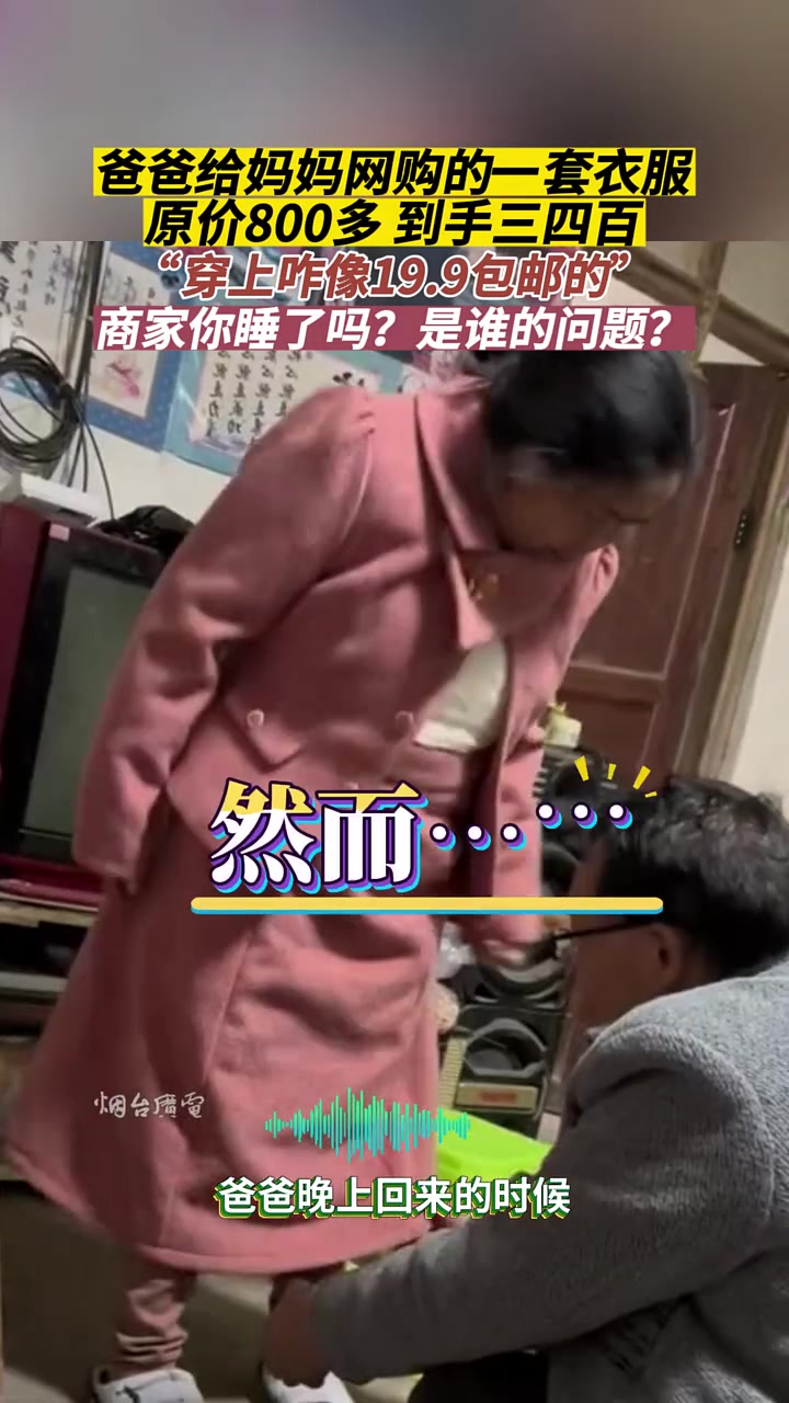 >爸爸给妈妈网购的一套衣服,原价800多 到手三四百!