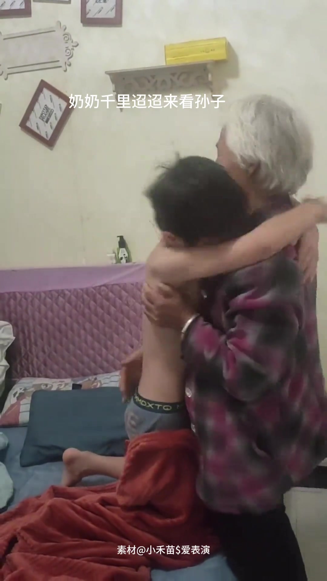 >奶奶千里迢迢来看孙子,一看就知道是奶奶带大的!
