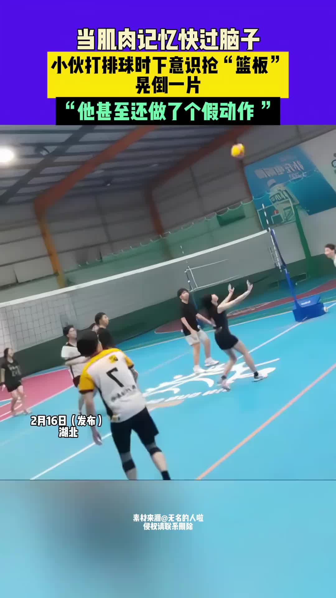 >当肌肉记忆快过脑子,小伙打排球时下意识抢“篮板”晃倒一片
