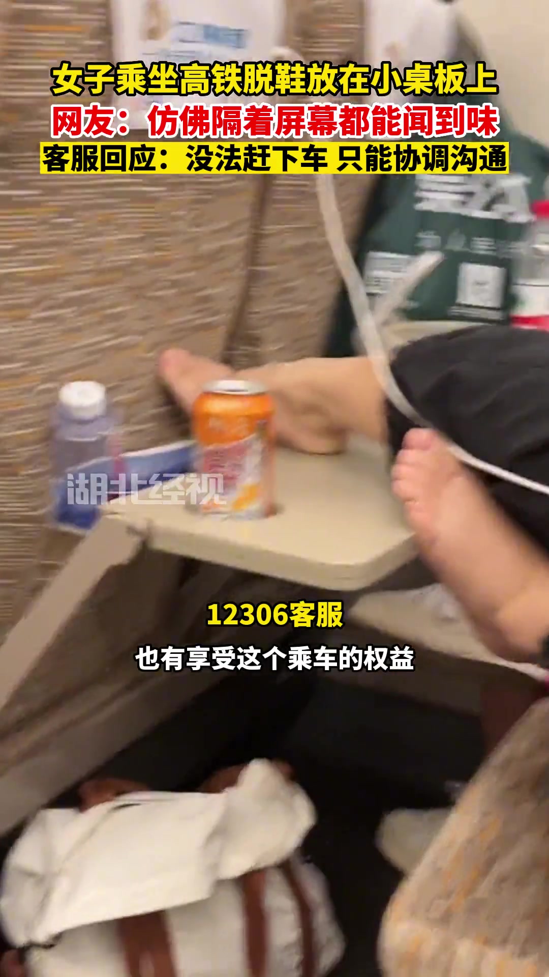 女子乘坐高铁脱鞋放在小桌板上 客服:没法赶下车 只能协调沟通