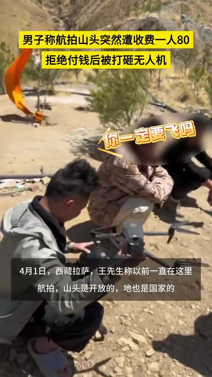 >男子称航拍山头突然遭收费一人80,拒绝付钱后被打砸无人机。