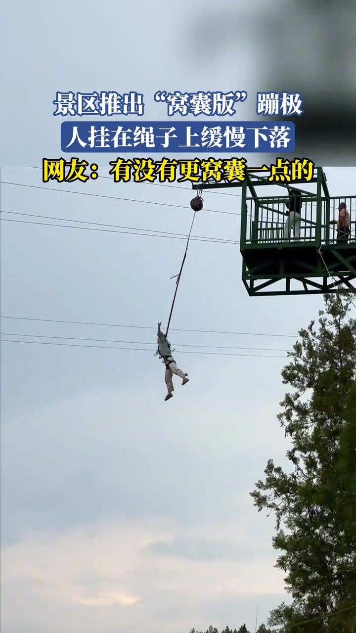 景区推出窝囊版蹦极 人挂在绳子上缓慢下落