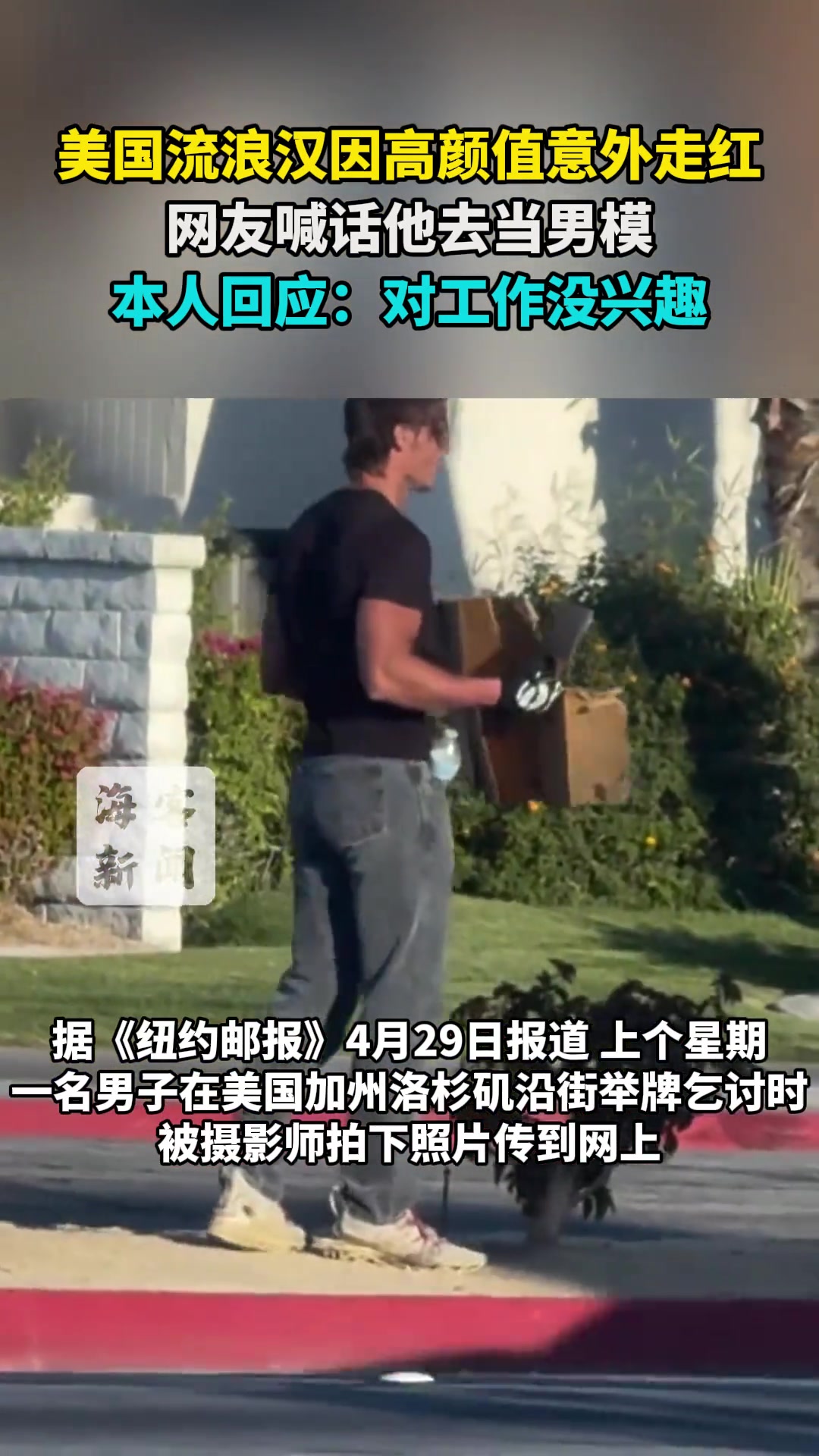 >美国流浪汉因高颜值走红 网友喊他当男模 本人回应:不想上班