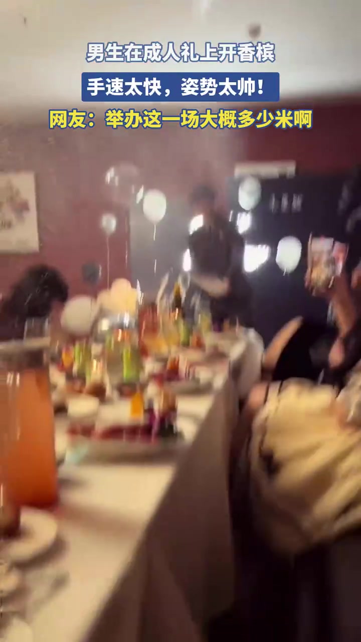 男生在成人礼上开香槟 手速太快 姿势太帅