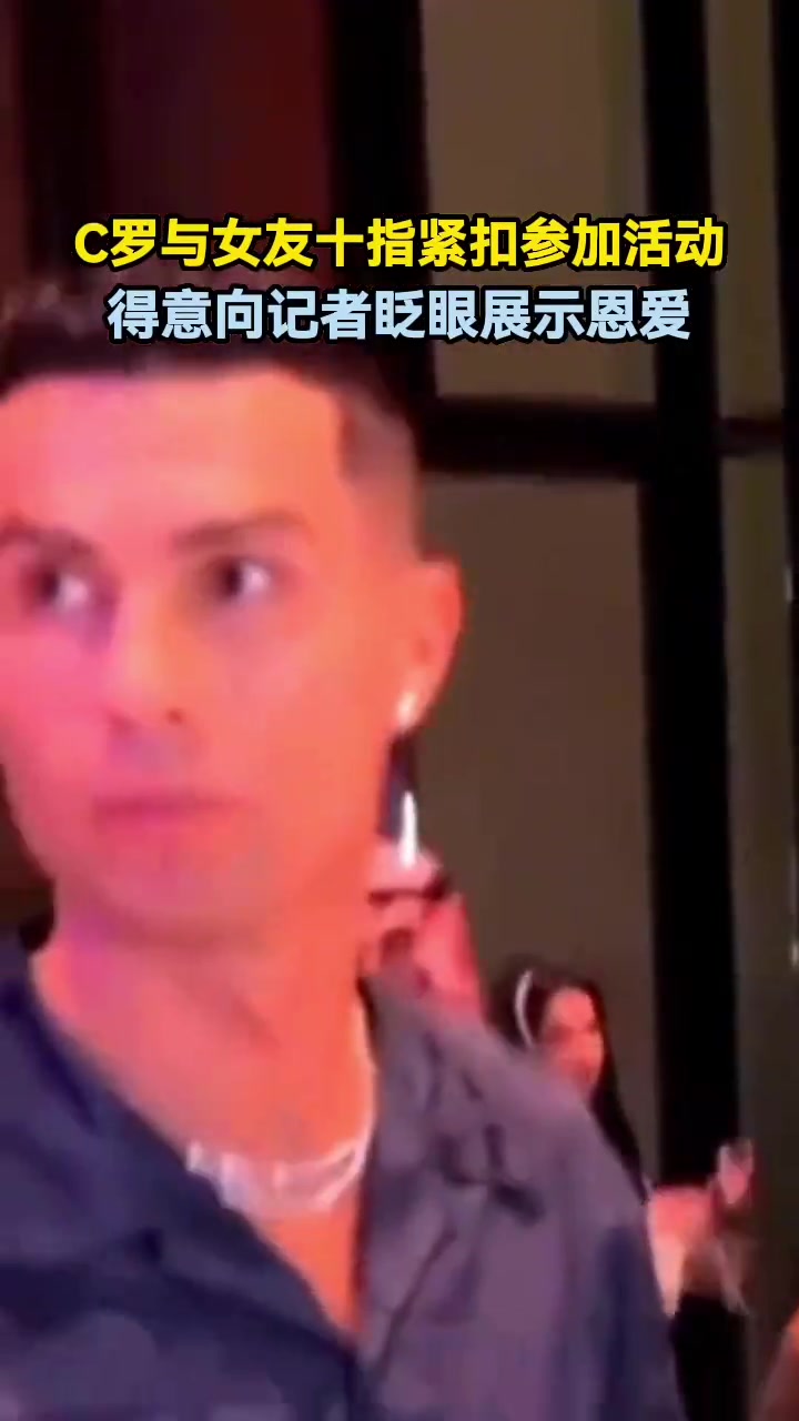 C罗与女友十指紧扣参加活动,得意向记者眨眼展示恩爱