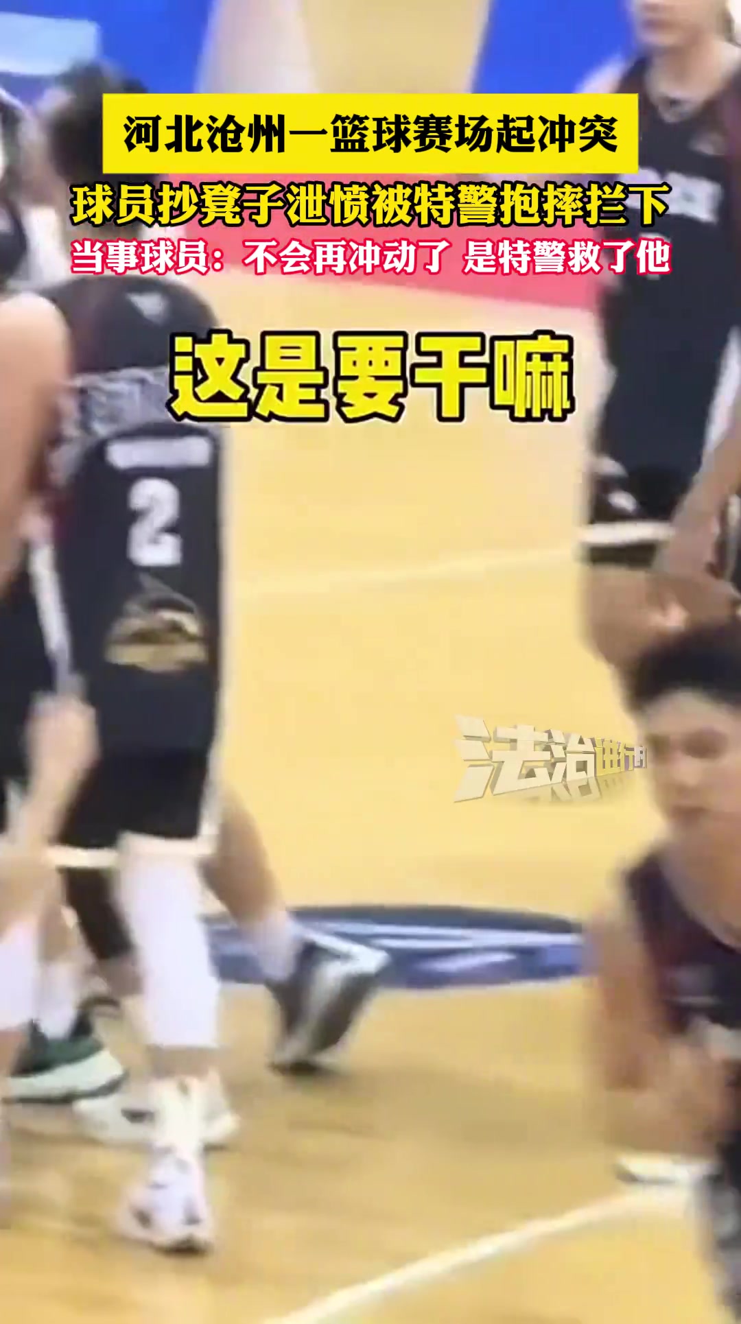 >一篮球赛场起冲突,球员抄凳子泄愤被特警抱摔拦下!!!