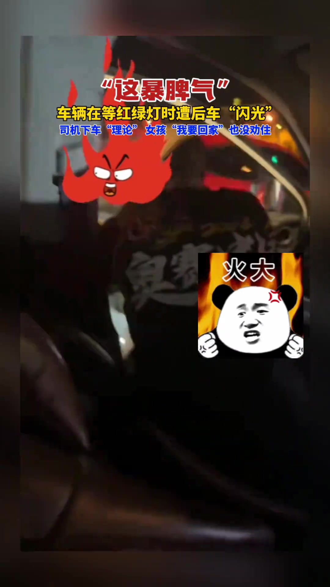>车辆在等红绿灯时遭后车“闪光”,司机下车找后车“理论”