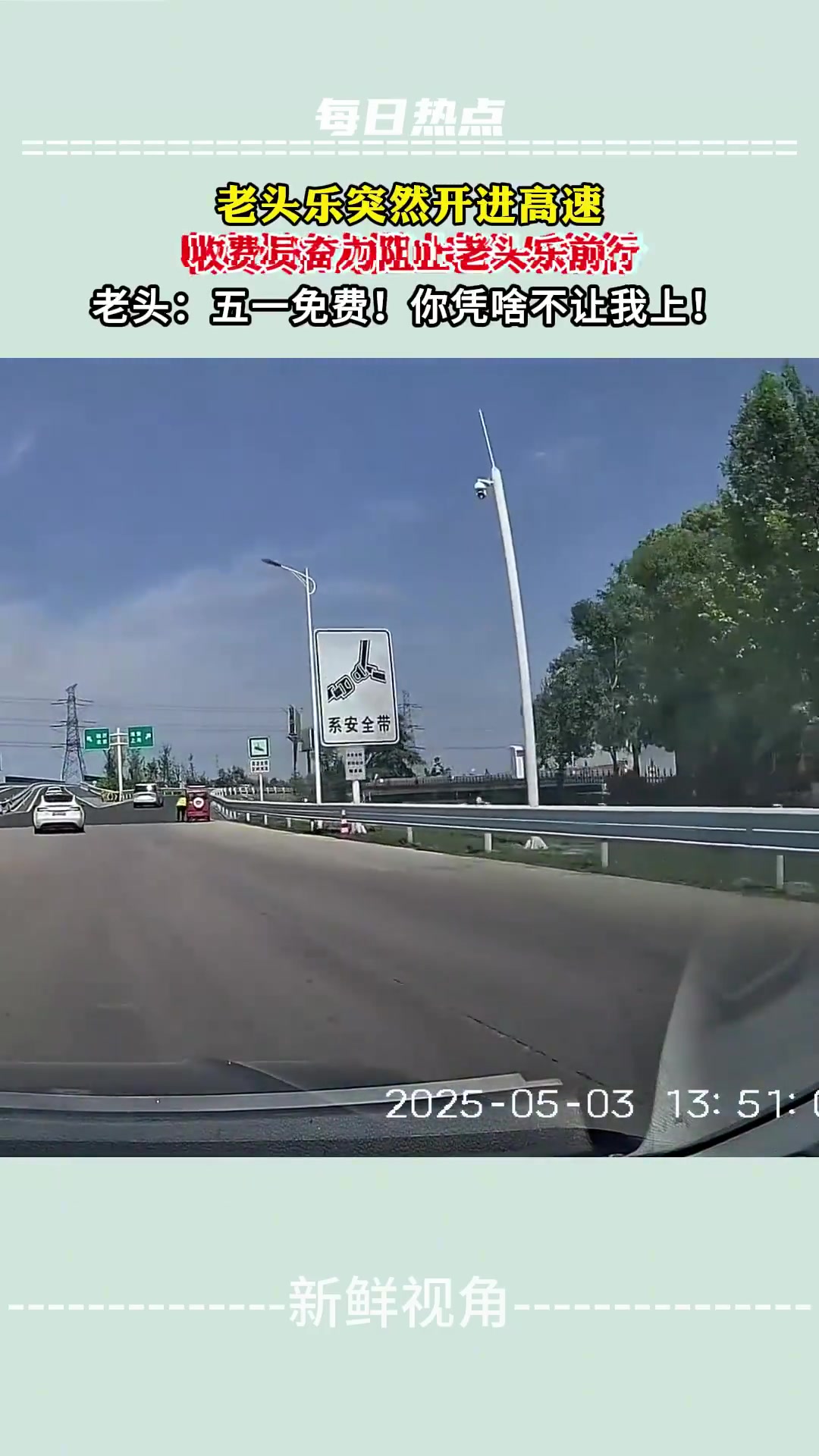 老头乐突然开进高速,收费员奋力阻止老头乐前行