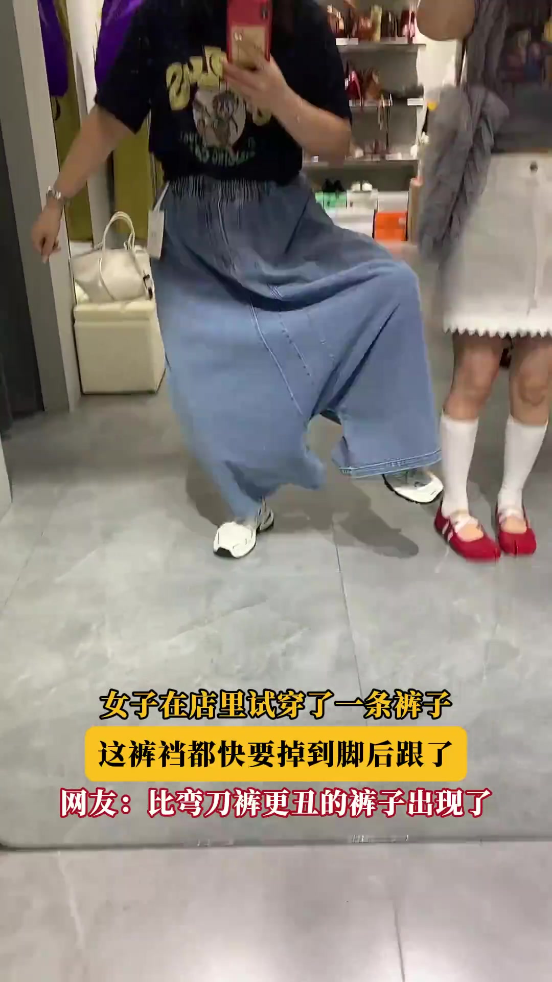 >女子在店里试穿了一条裤子,这裤裆都快要掉到脚后跟了!!😂