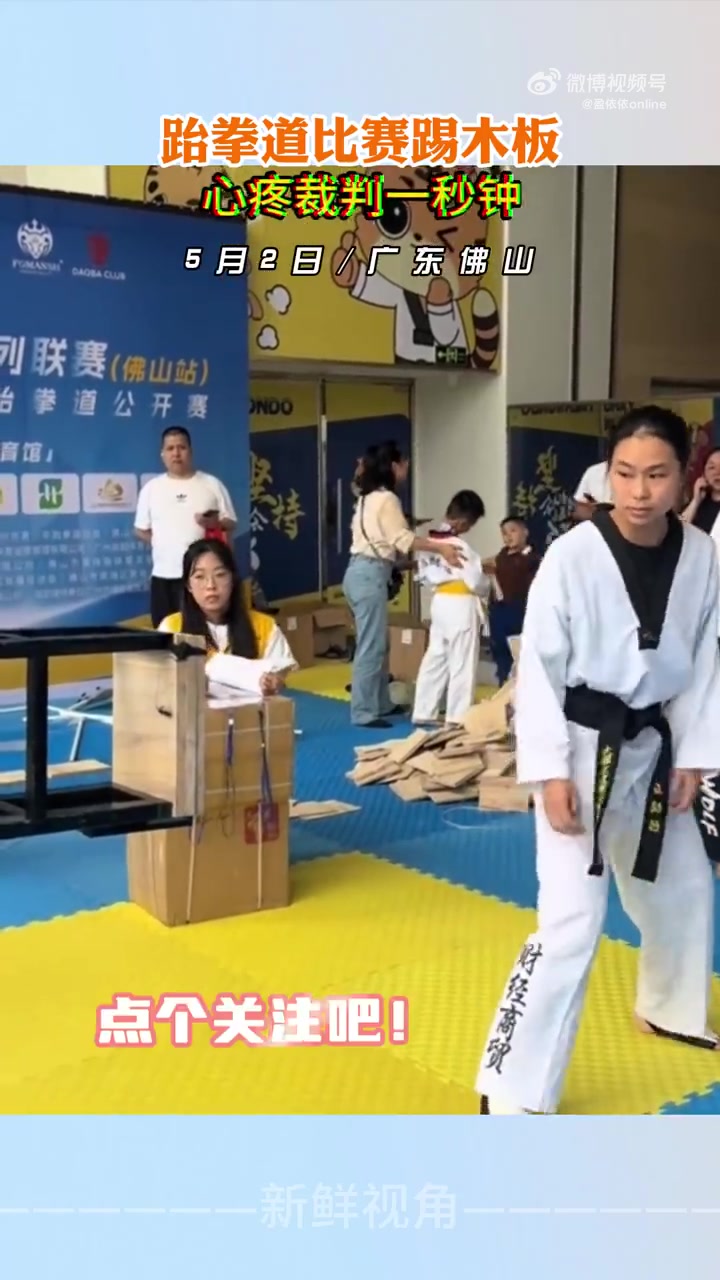 >跆拳道比赛踢木板 心疼裁判一秒钟