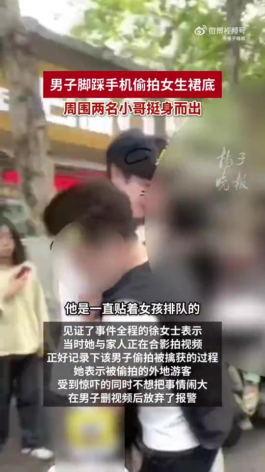男子脚踩手机偷拍女生裙底,女生放弃报警!