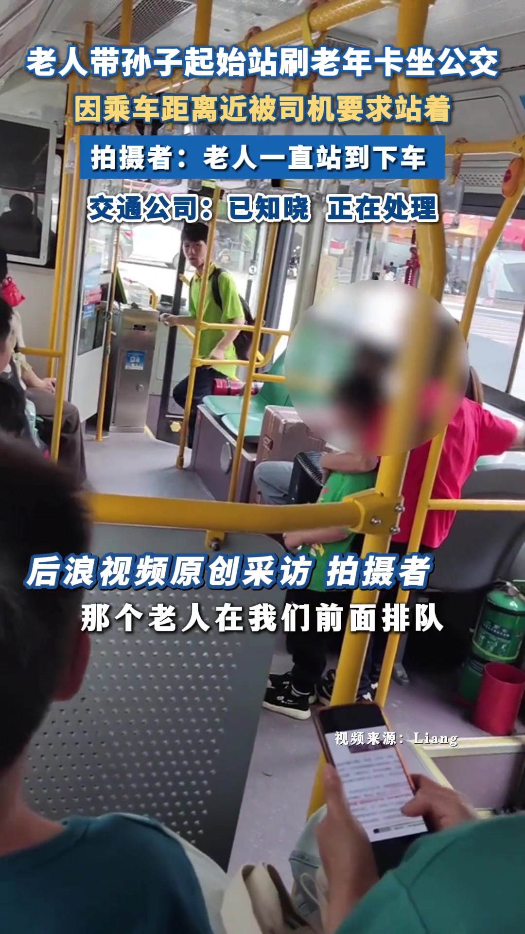 >老人刷老年卡带孙子乘车被要求站着