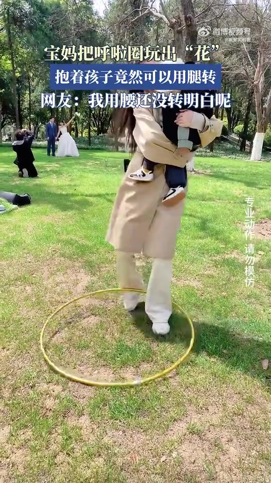 >宝妈把呼啦圈玩出“花”抱着孩子竟然可以用腿转。