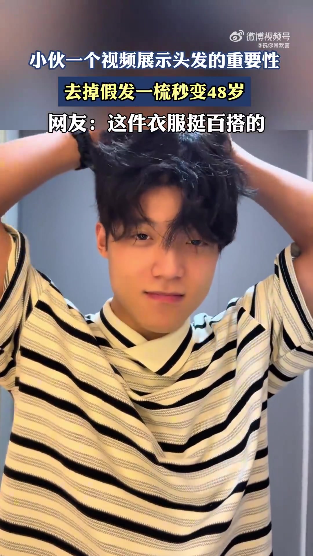 小伙视频展现头发重要性,摘假发梳发秒变48岁