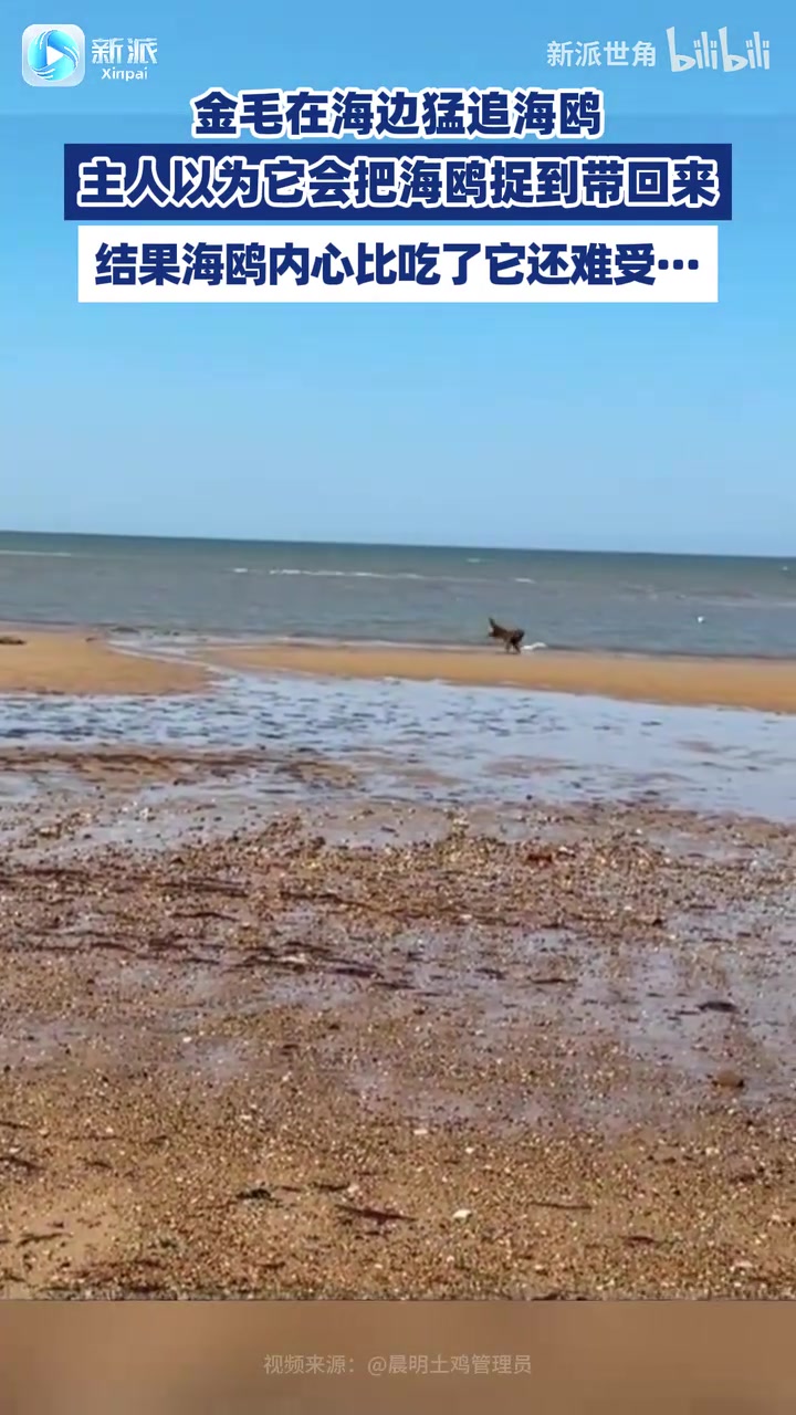 >金毛在海边猛追海鸥,结果令人意想不到···