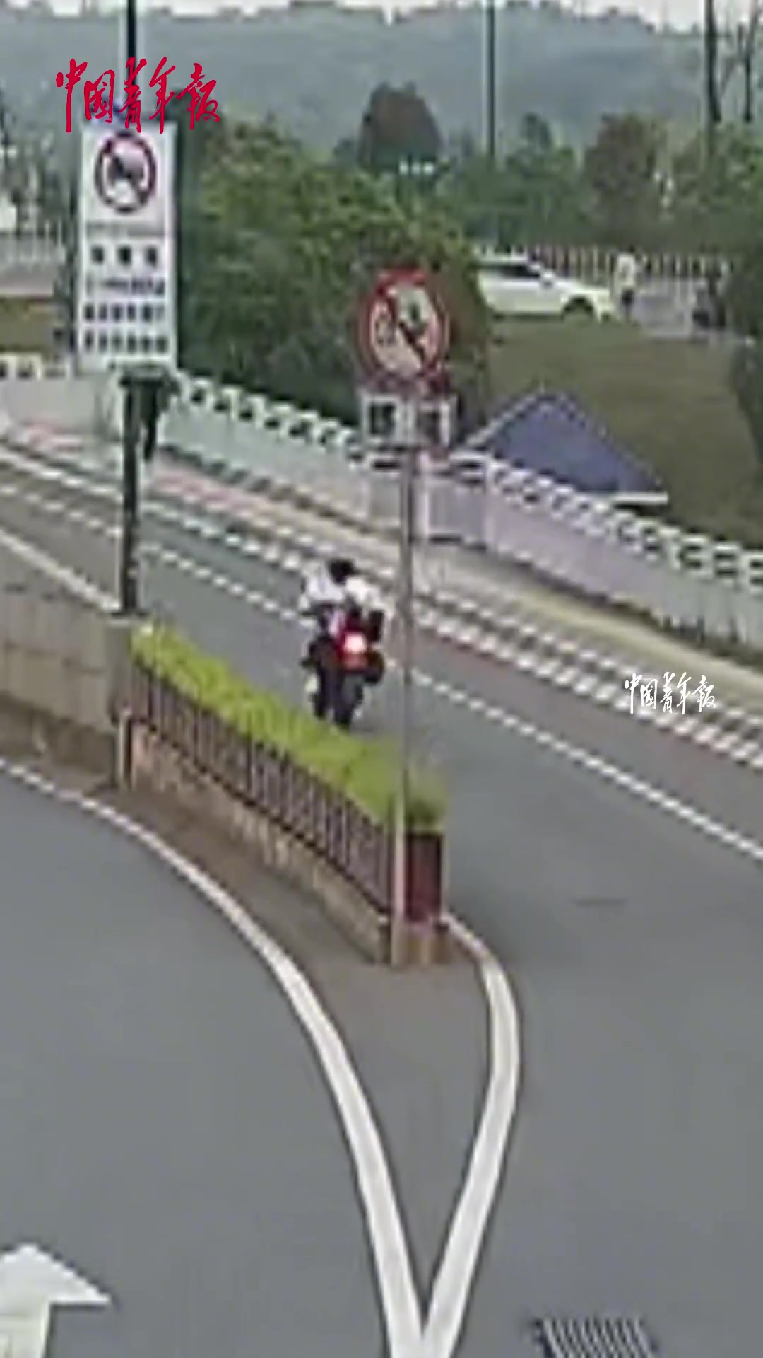 惊险!骑车男子被风筝线“割喉”倒地,所幸没有大碍。