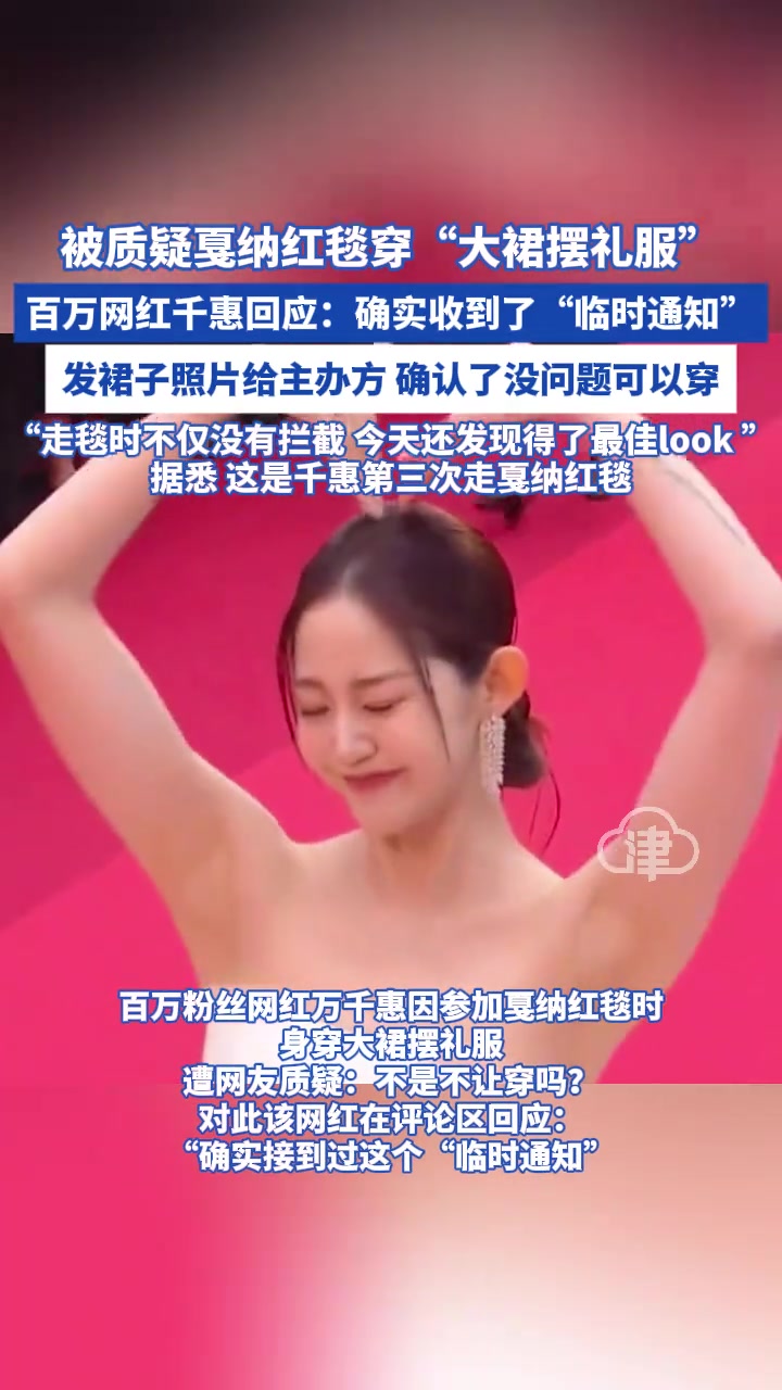 >被质疑戛纳红毯穿“大裙摆礼服”? 百万网红千惠回应