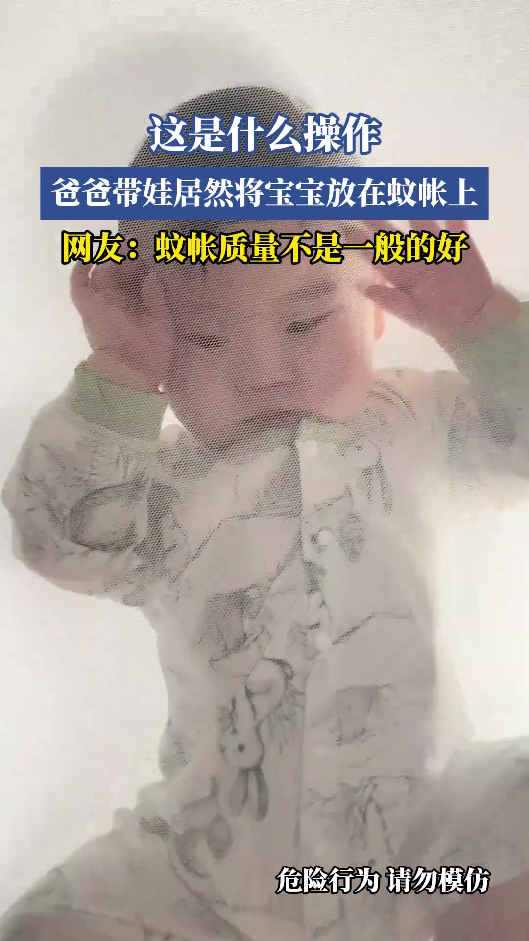 >爸爸带娃居然将宝宝放在蚊帐上!