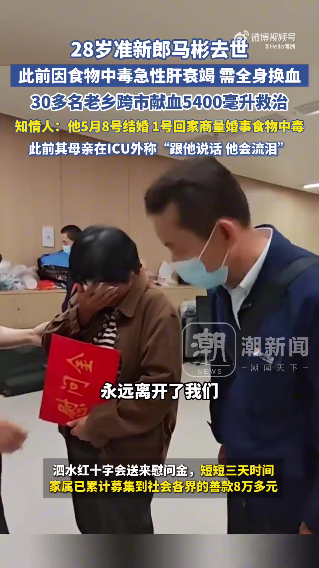 >28岁准新郎马彬食物中毒去世:婚礼前一周因食物中毒急性肝衰竭