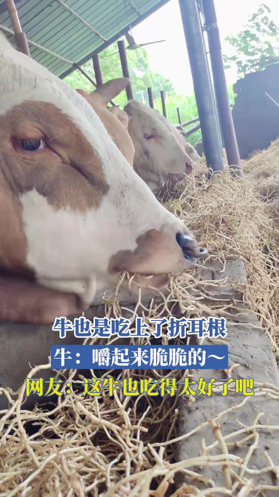 牛吃上折耳根,嚼着脆脆的,网友:这待遇真好!