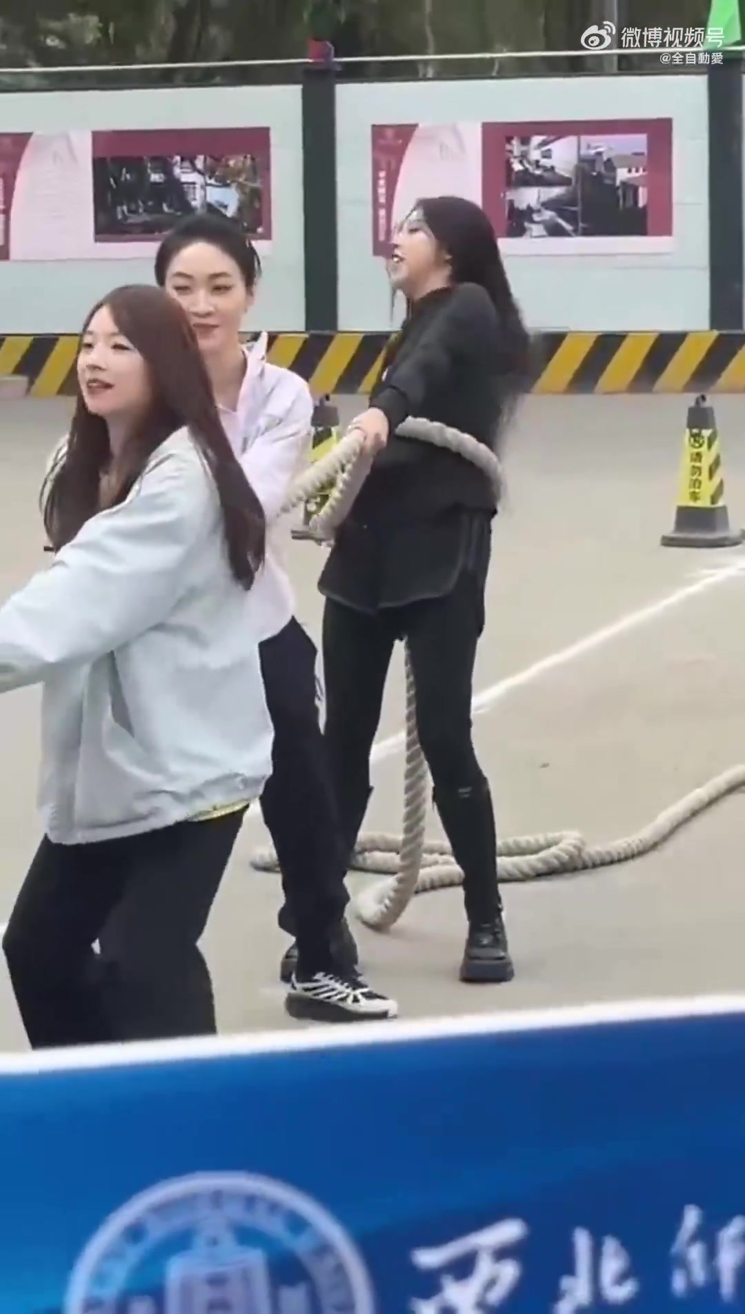 甘肃兰州西北师范大学拔河比赛,黑衣女生全网走红