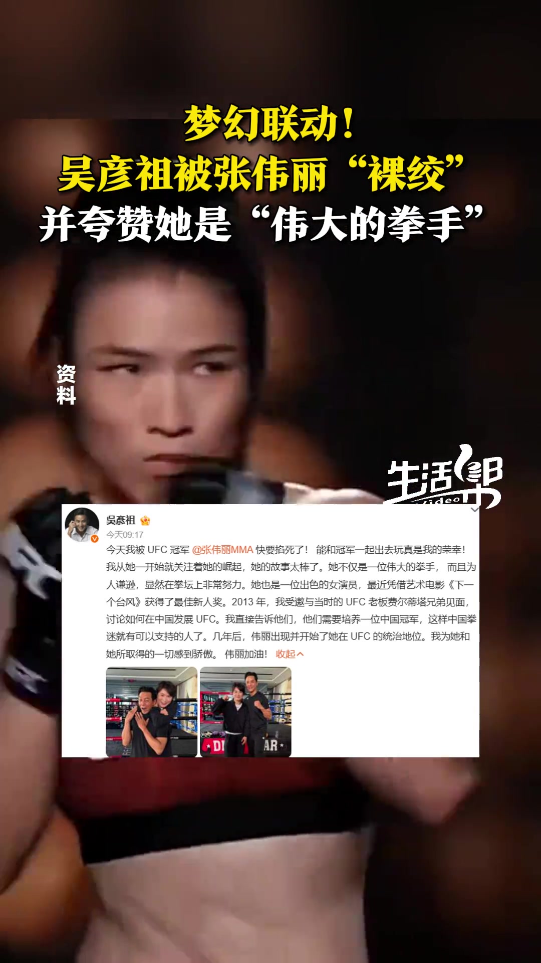 >吴彦祖被张伟丽“裸绞”,发文夸赞她是“伟大的拳手