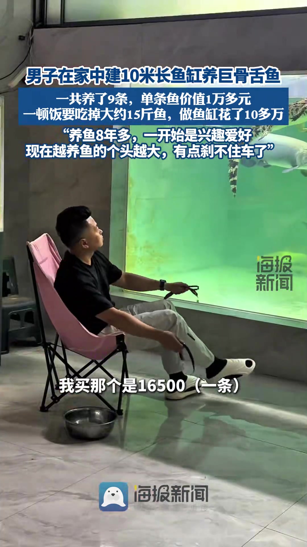 >男子在家中建10米长鱼缸养巨骨舌鱼