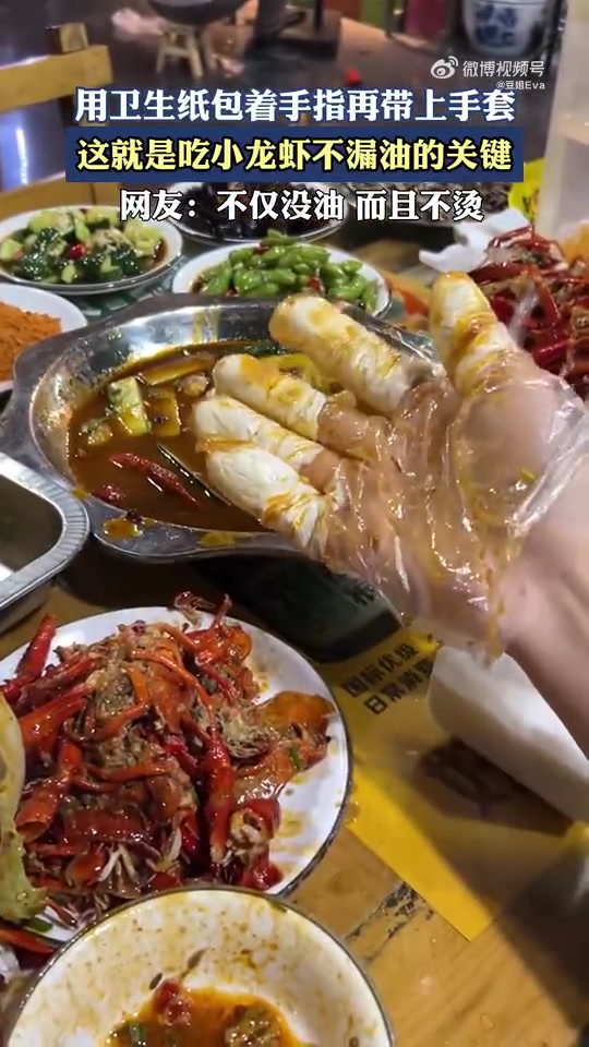 用卫生纸包手指再戴手套,吃小龙虾不漏油的关键