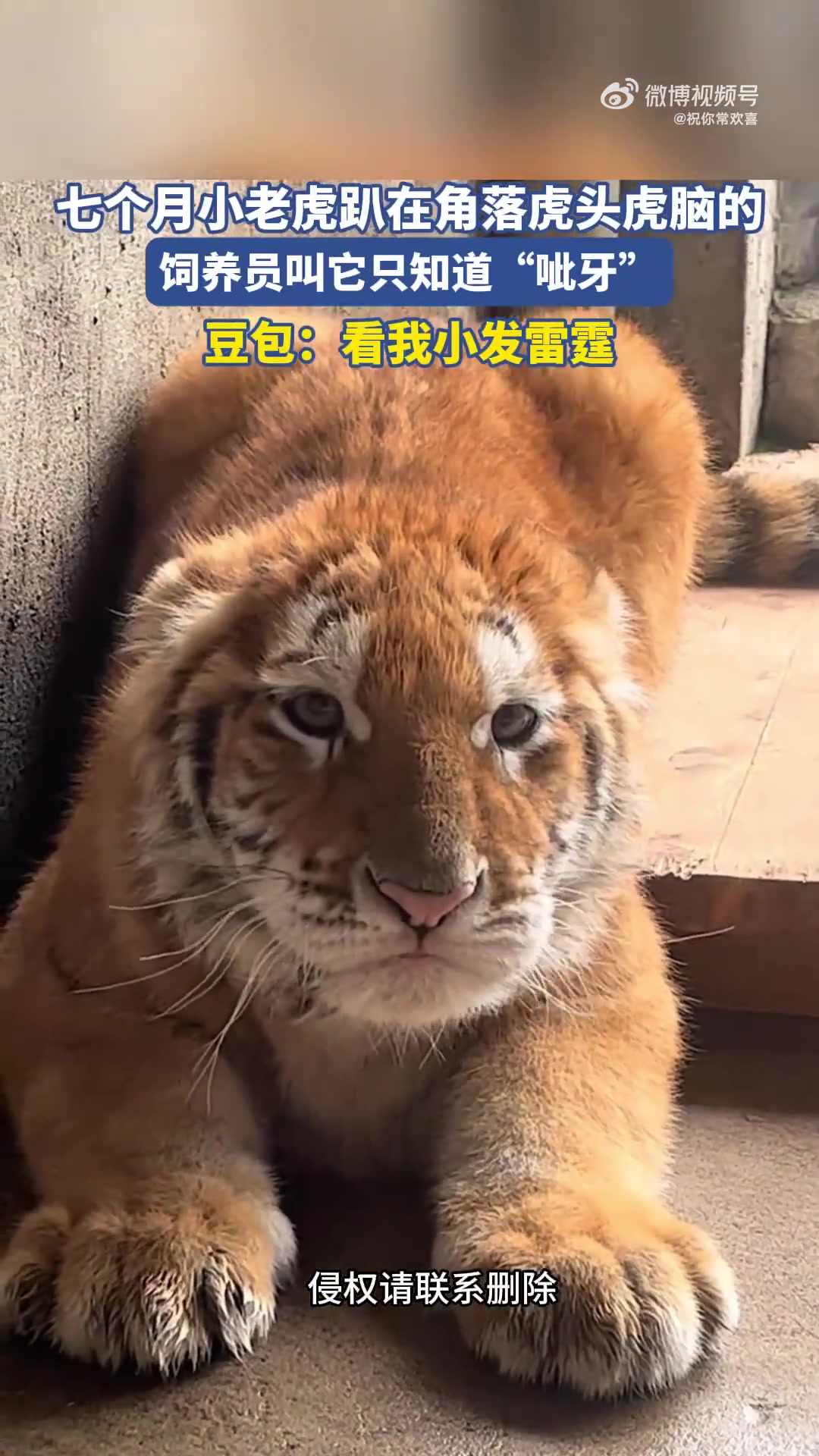 七个月小老虎趴角落虎头虎脑,饲养员呼唤它只“呲牙”