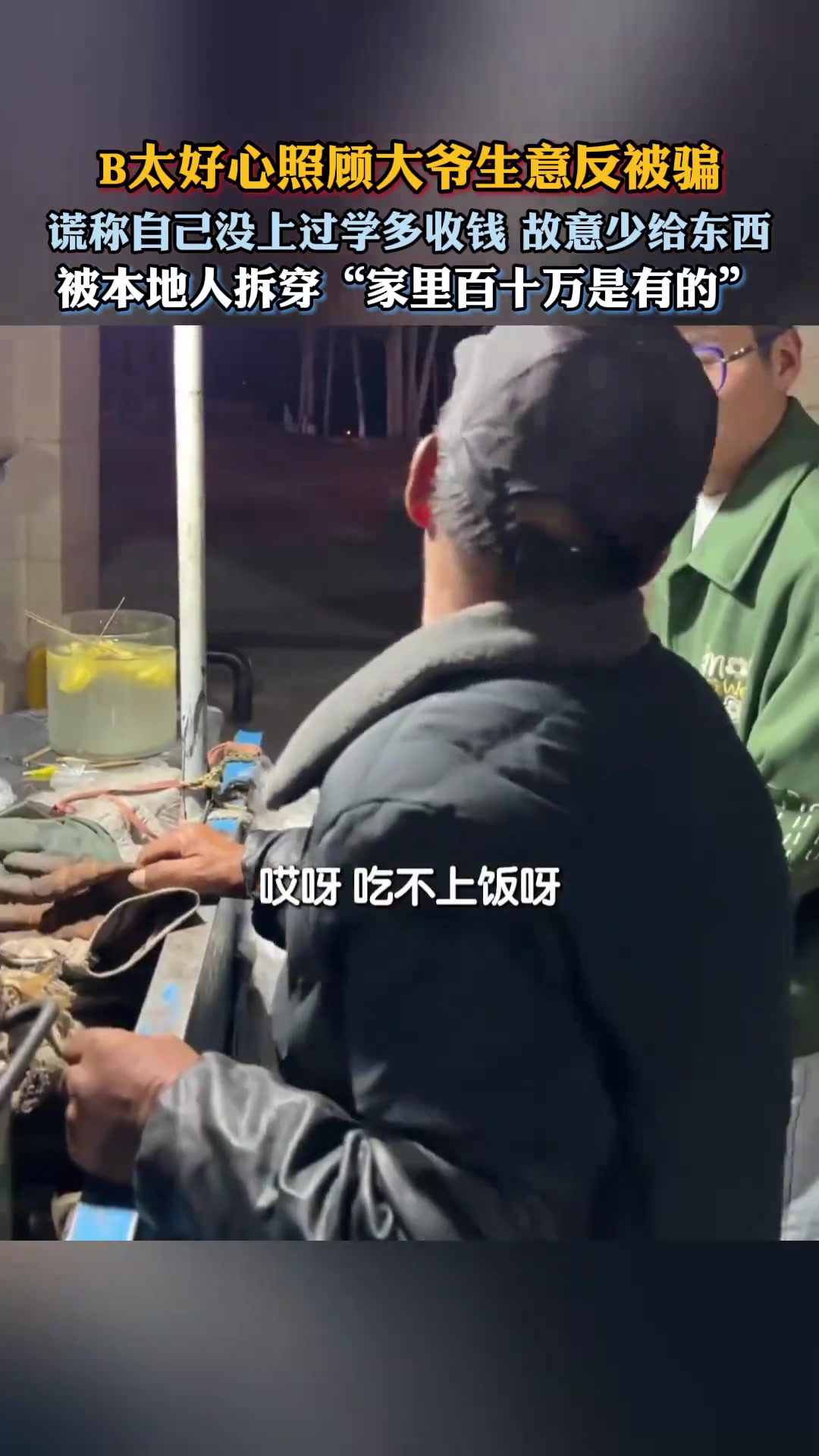 >B太好心照顾大爷生意反被骗,谎称没上过学故意少给东西