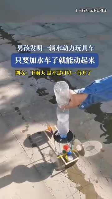 男孩发明一辆水动力玩具车 只要加水车子就能动起来