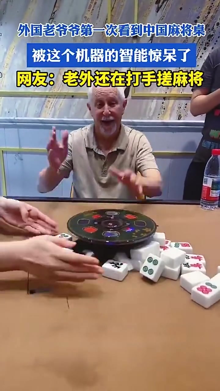 外国老爷爷第一次看到中国麻将桌,被这个机器的智能惊呆了!