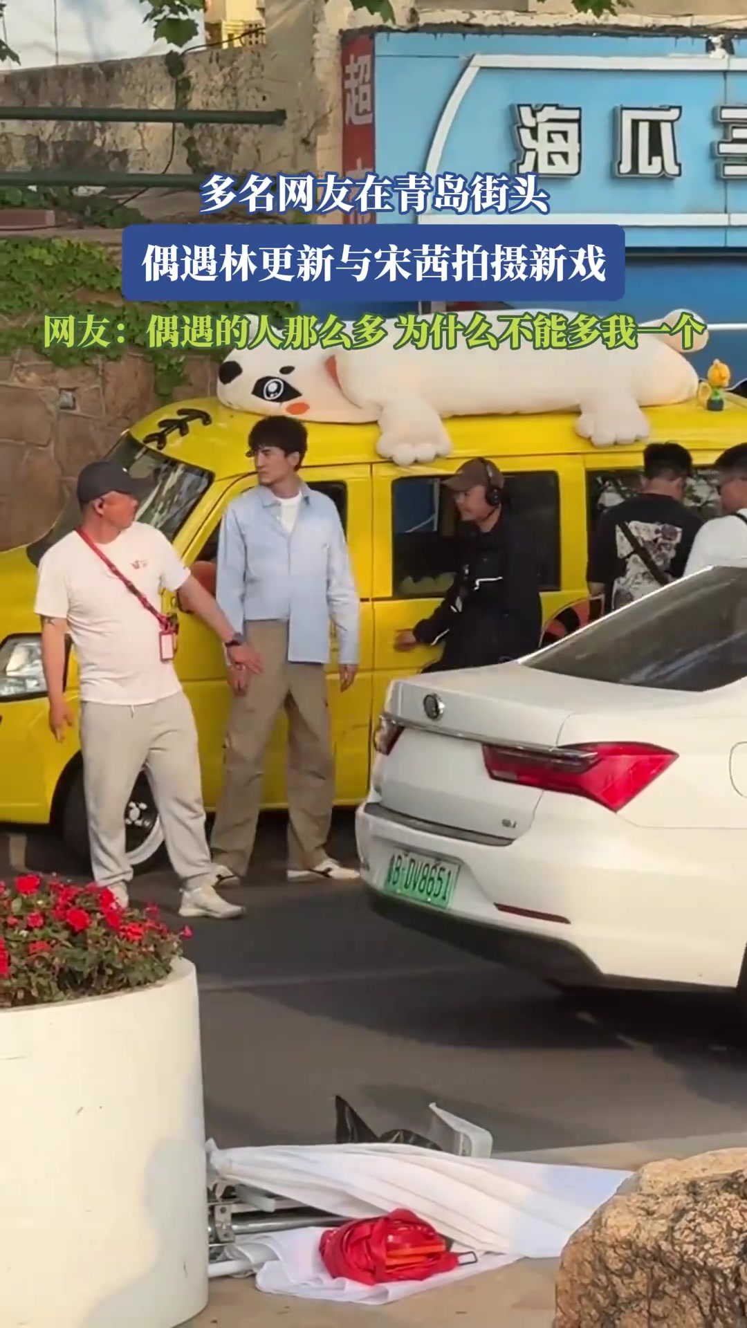 多名网友在青岛街头,偶遇林更新与宋茜拍摄新戏