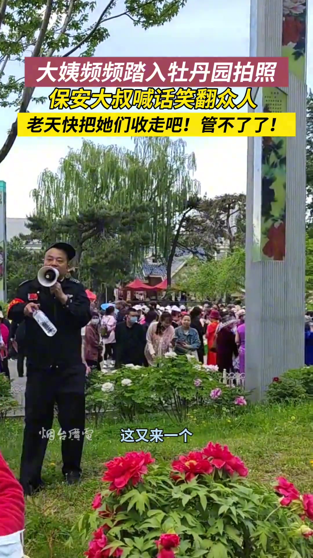 >保安大叔爆笑驱赶踏入牡丹园拍照的阿姨!