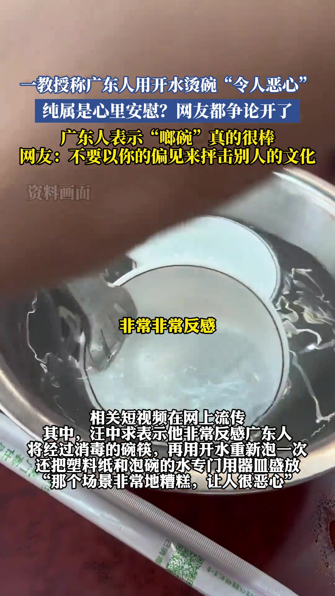 >一教授称广东人用开水烫碗“令人恶心”,纯属是心里安慰?