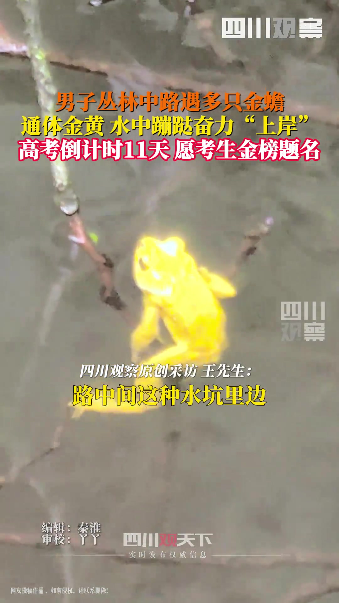 男子丛林中偶遇金蟾群 ,通体金黄,好似在发光。
