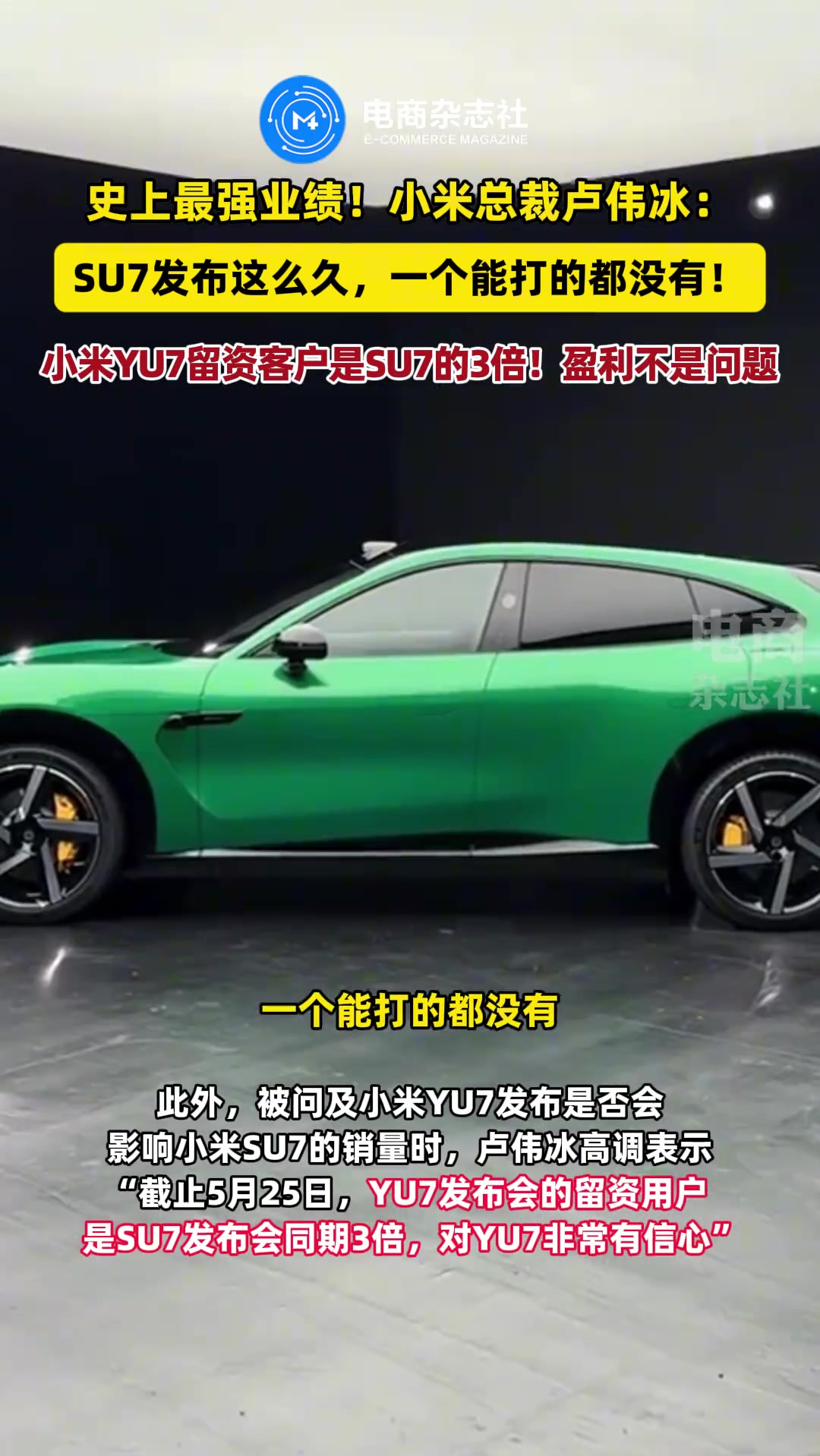 小米总裁:SU7发布这么久,一个能打的对手都没有!