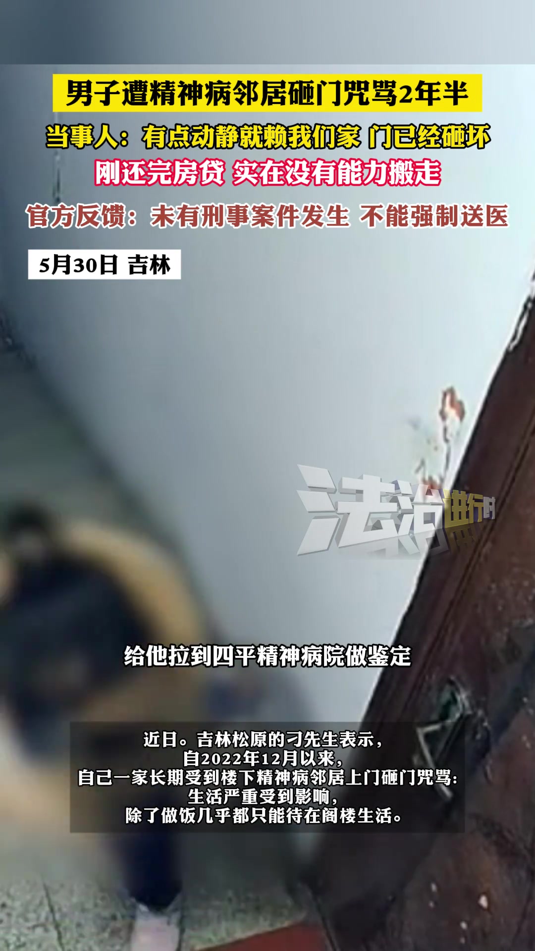 >男子遭精神病邻居砸门咒骂2年半当事人