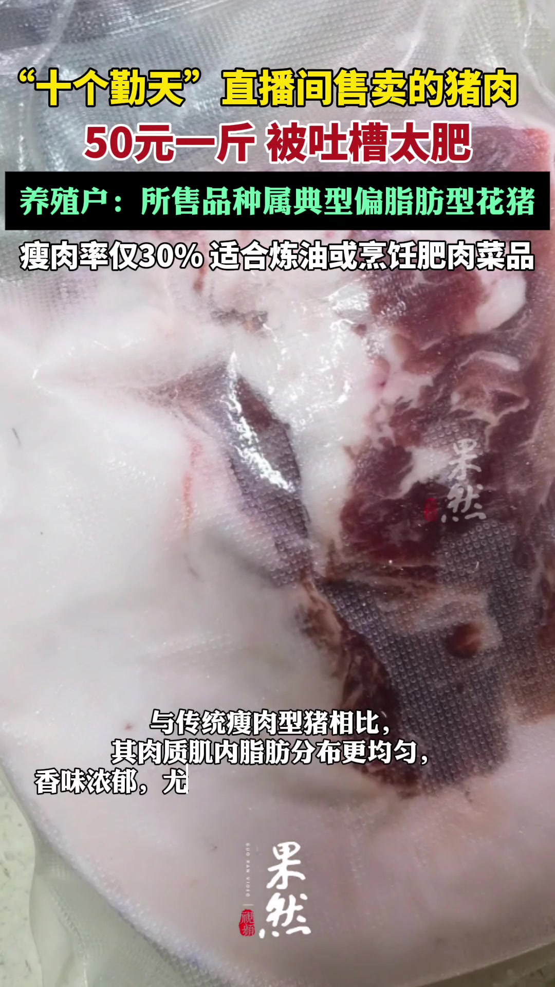 >“十个勤天”直播间售卖猪肉被吐槽太肥