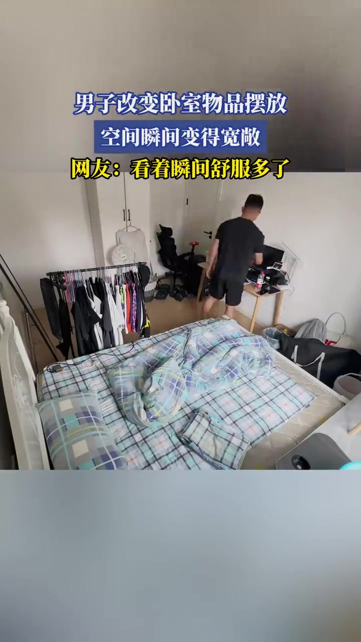 >男子改变卧室物品摆放,空间瞬间变得宽敞!
