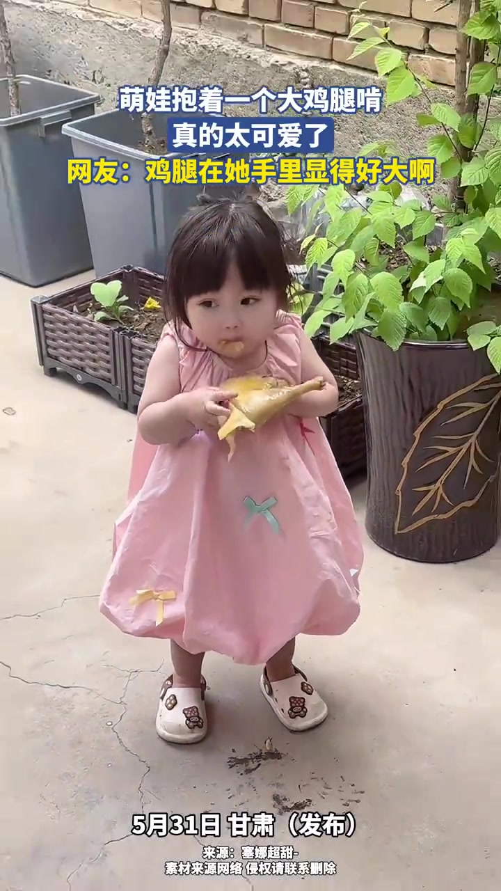萌娃抱着一个大鸡腿啃 真的太可爱了