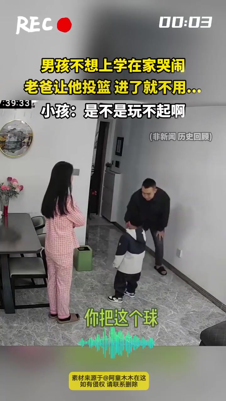 男孩不想上学哭闹,老爸 “投篮赌约” 神化解