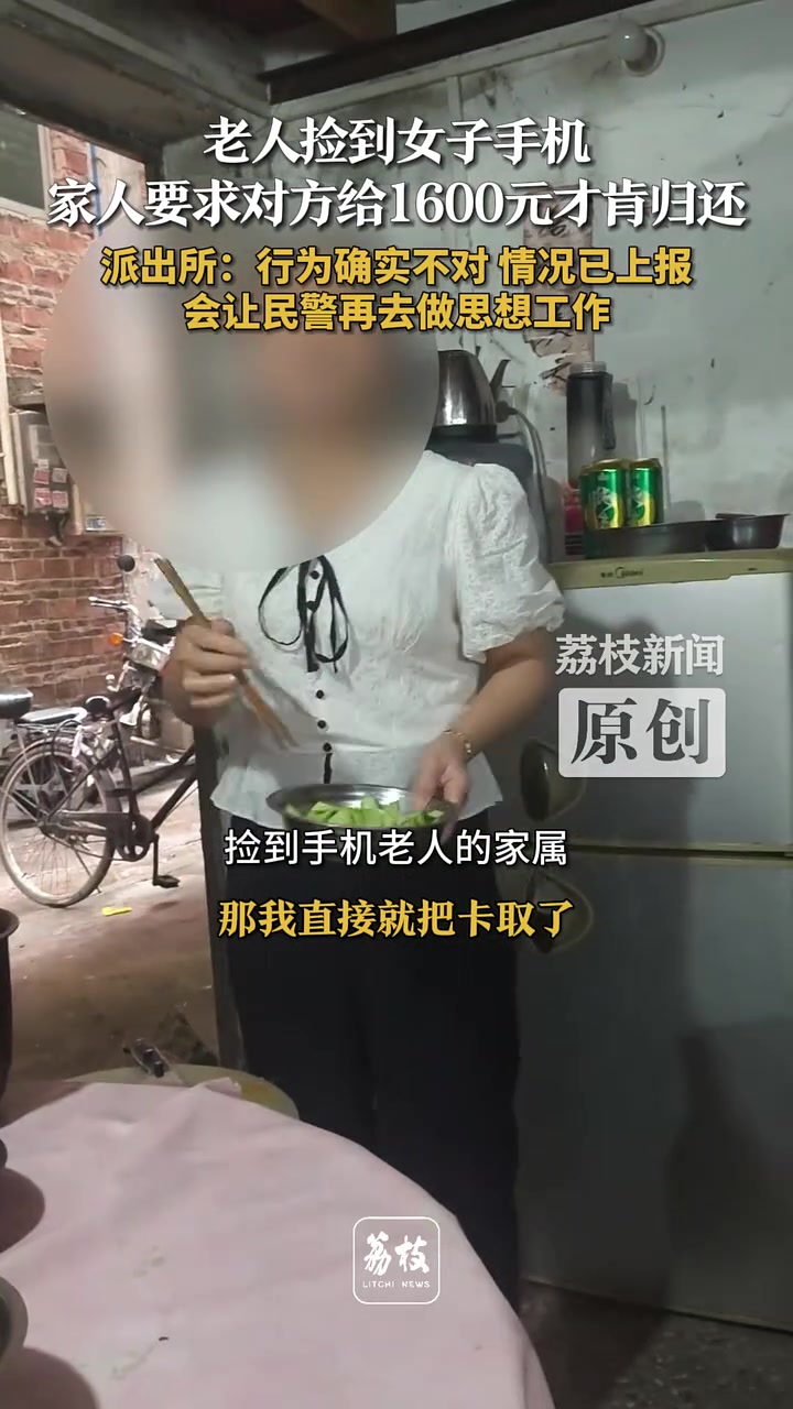 >老人捡到女子手机 家人要求对方给1600元才肯归还!!